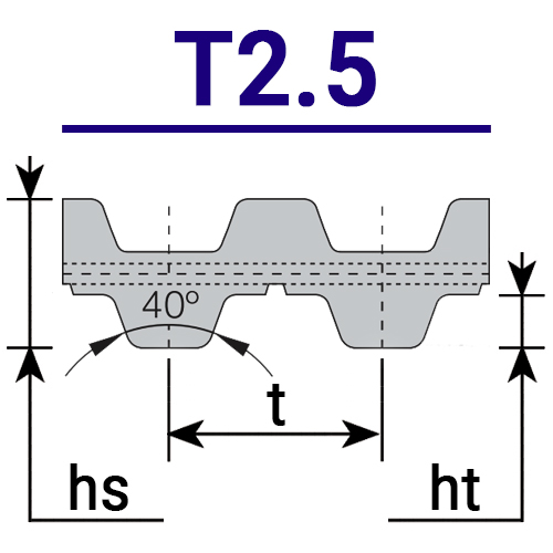 1.Шаг зуба (Pitch): 2,5 мм (расстояние между центрами соседних зубьев).