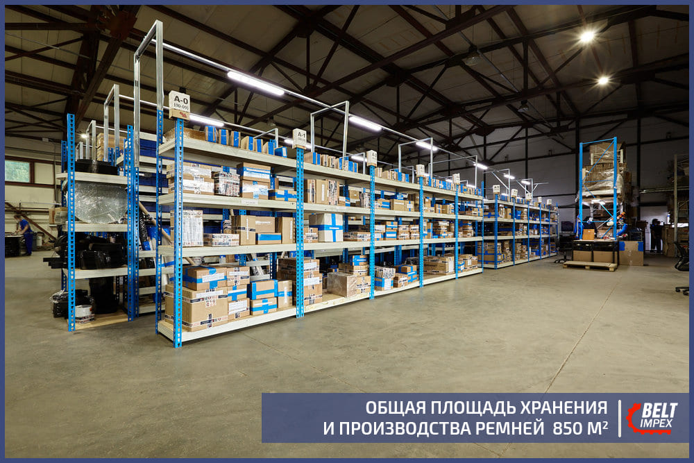- На складе хранится более 5 500 позиций ремней, общей ширина викелей более 6 000 м.