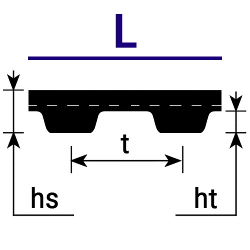 1. Профиль зуба: Трапецеидальный, что обеспечивает надежное сцепление с шкивами и минимизирует проскальзывание.